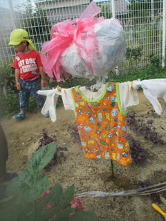 かかしの登場に驚いていたぶどう組さんもいましたが、見慣れてくると触ってみたり、興味津々でした。