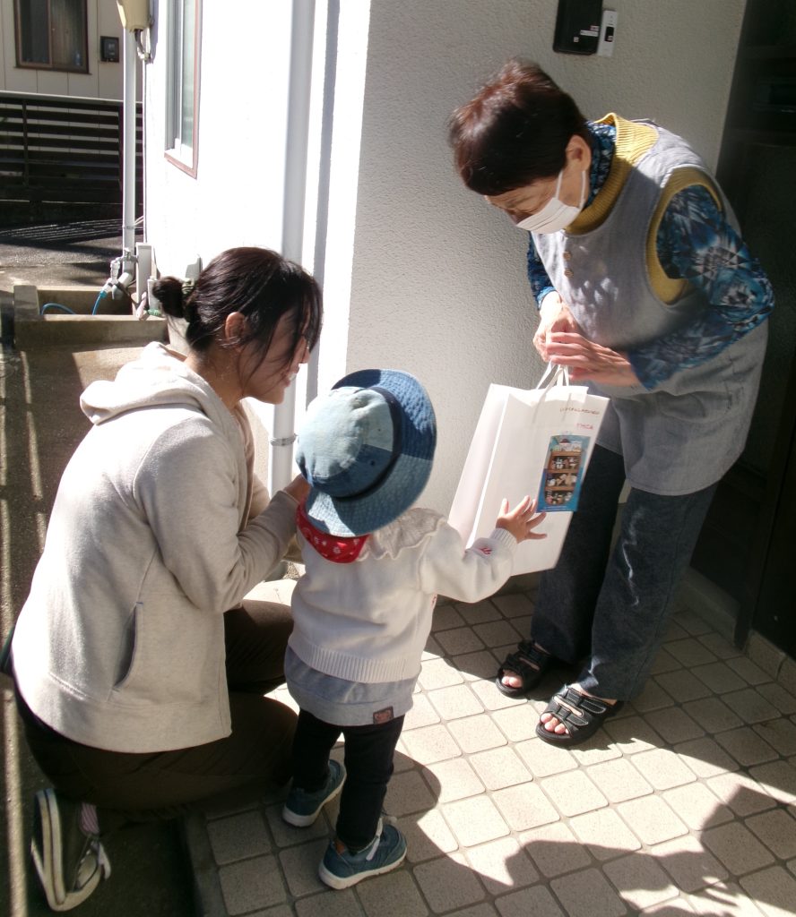 礼拝後は、お世話になっている近隣の方へ果物や野菜を届けに行きました。