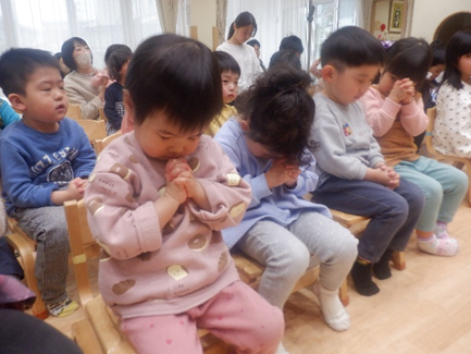 1日は「進級礼拝」がありました。一つ大きなクラスになり、新しいクラスの名札をもらったり、クラス担任の紹介などがありました。
