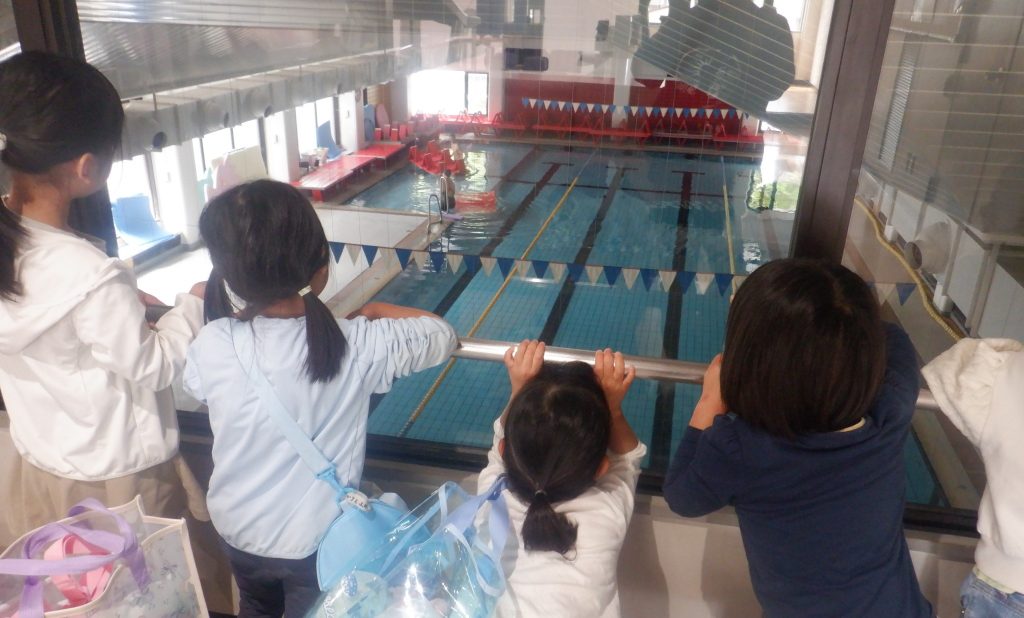 「おうちで水着に着替える練習してきたよ」「YMCAのプールに行ったことがあるから、行ったことがないお友だちに教えてあげるよ」とバスに乗った時からワクワクしていました。