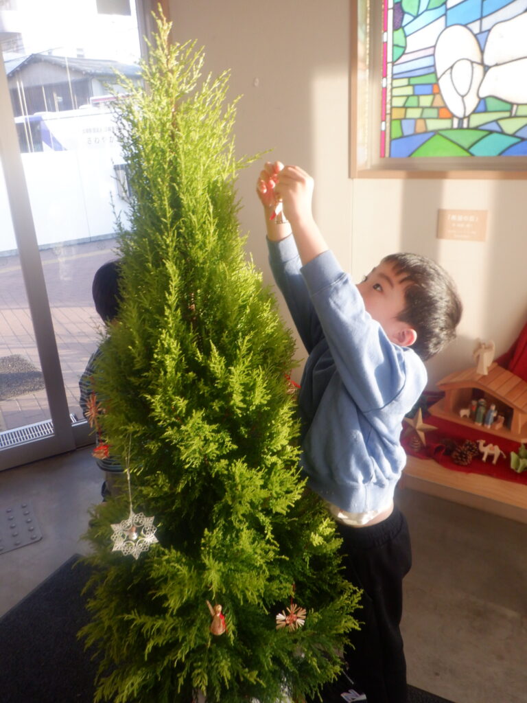 先日の土曜日には、玄関のツリーに子どもたちと一緒に飾り付けをしました♪