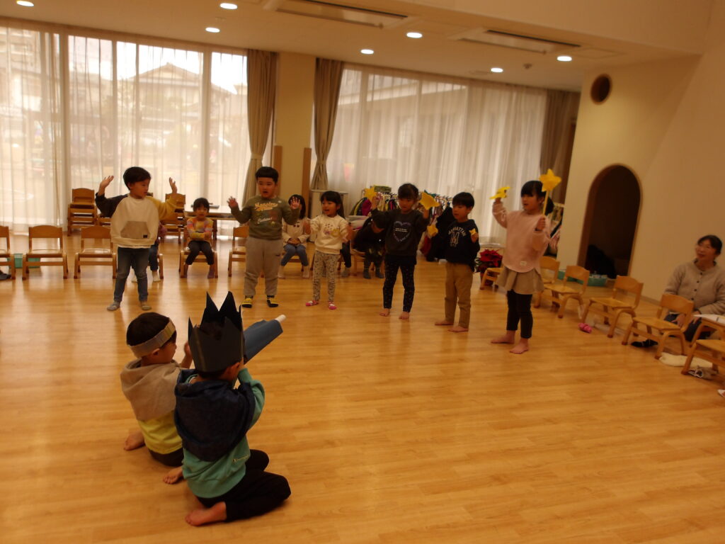 ほし組は、にじ組やひかり組と一緒にページェントに参加したり、保育室でページェントごっこを楽しんでいます。