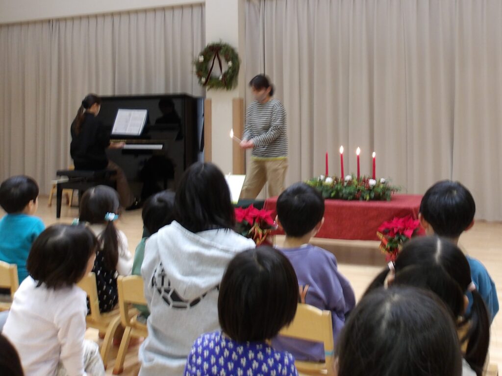 幼児部のアドベント礼拝では、心を落ち着かせて参加する姿がありました。