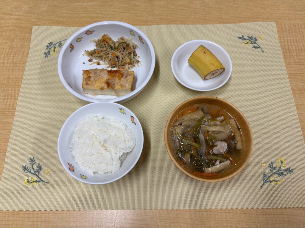 1/20(火)のお昼ご飯に山形風雑煮汁を提供しました。