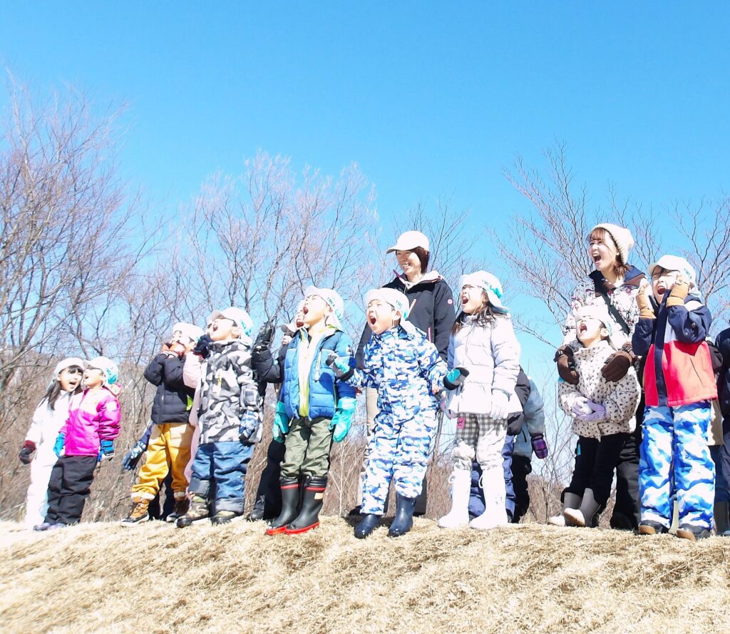 到着すると、「見て、ぼくの足跡ついた」と雪を踏みしめ感触を楽しむ姿や小高い丘に登り、遠くの山々に向かい「ヤッホー」と叫ぶ姿が見られました。
