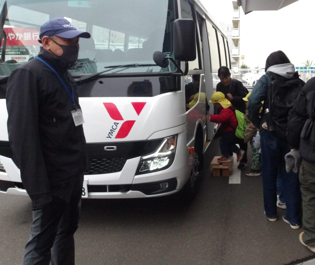 YMCAのバスに乗り込み、少しドキドキしながら、いざ出発!