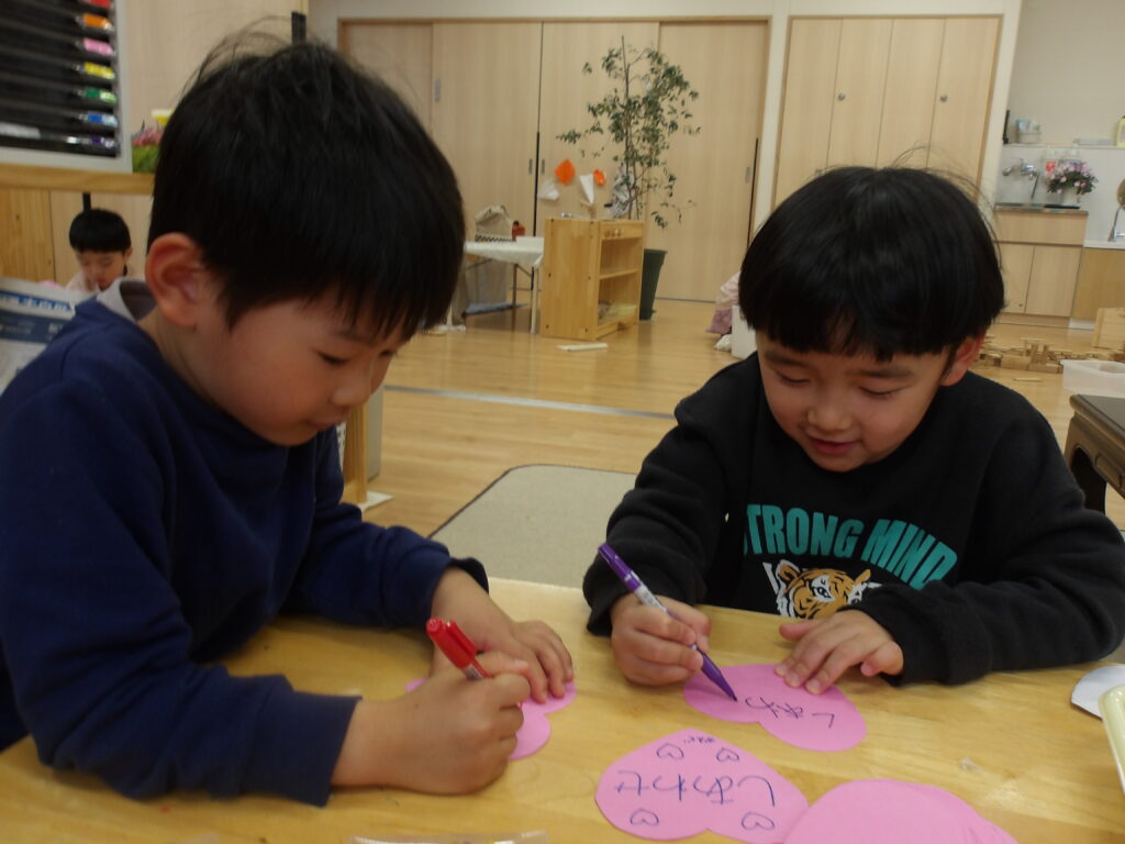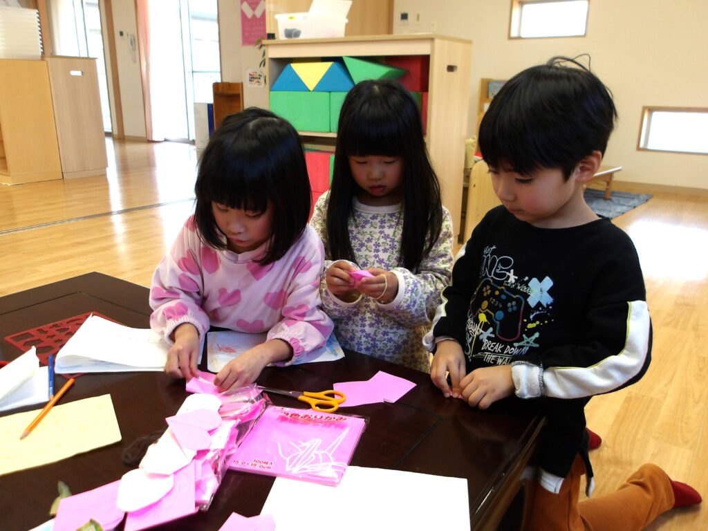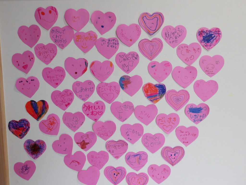 などのテーマで考えました。そして、思い思いに制作をし、園内をピンク色に彩ってくれました!